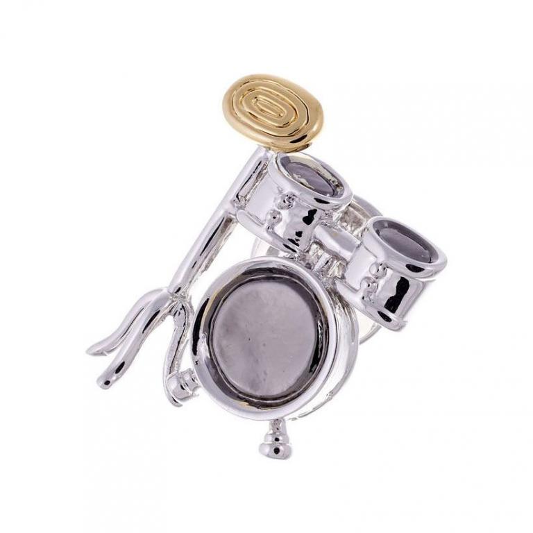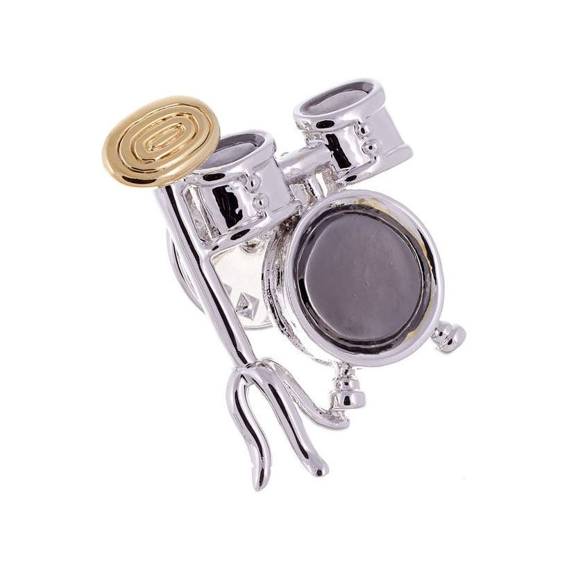 Anstecknadel Schlagzeug versilbert, teilvergoldet und rhodiniert feine Verarbeitung Größe (L x B): ca. 25 x 21 mm